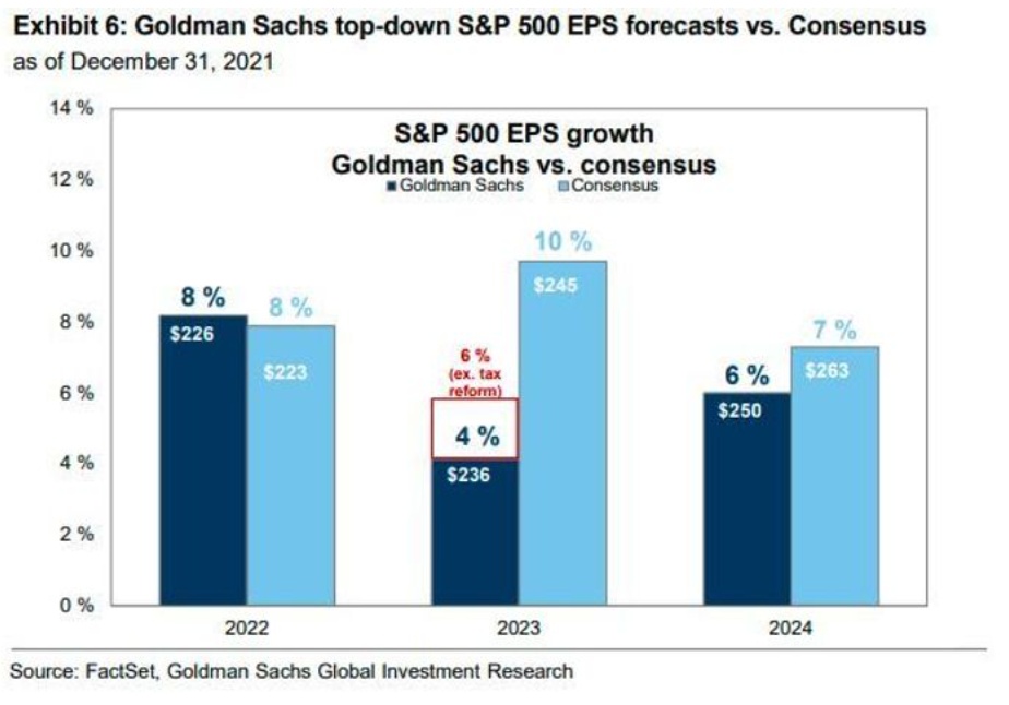 这位策略师表示,2022年,与收益和估值相关的变量将决定标普500指数成分股公司的表现。高盛预计,该指数今年将收于5100点,这是华尔街预测的顶部区间。