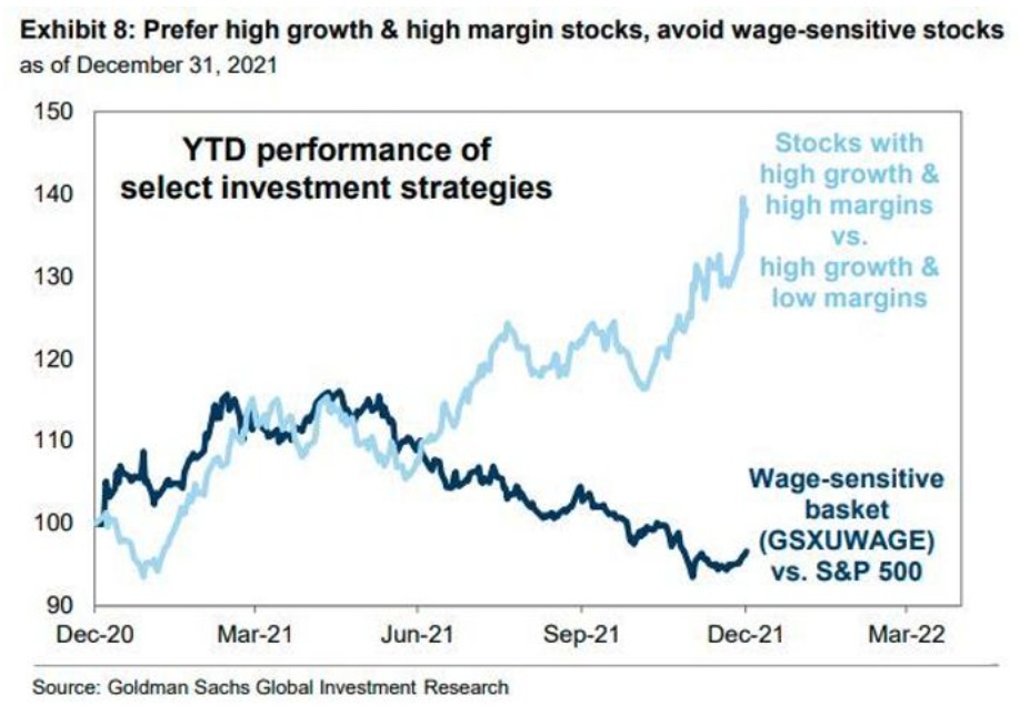 智通财经APP获悉,高盛为新年提出一些投资美股的建议。由美国顶级股票策略师David Kostin领导的一个团队表示:“2022年,投资者应关注高增长和高利润率的股票,避开受工资通胀影响较大的公司。”