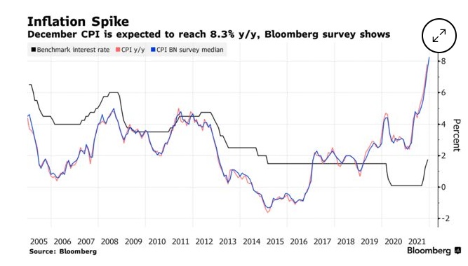 同时,Gatnar上周表示,如果12月通胀率超过8%,那么“加息50个基点将是合适的”。在11月时,该国的CPI增幅飙升至7.8%,为2000年12月以来的最高水平。