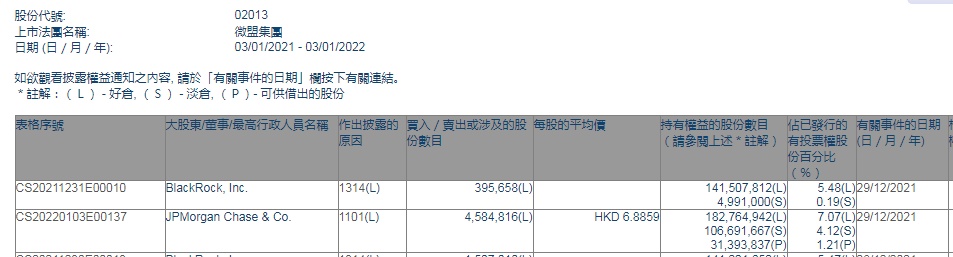 智通财经APP获悉,香港联交所最新资料显示,12月29日,小摩增持微盟集团(02013)458.4816万股,每股作价6.8859港元,总金额约为3157.06万港元。增持后最新持股数目约为1.83亿股,最新持股比例为7.07%。