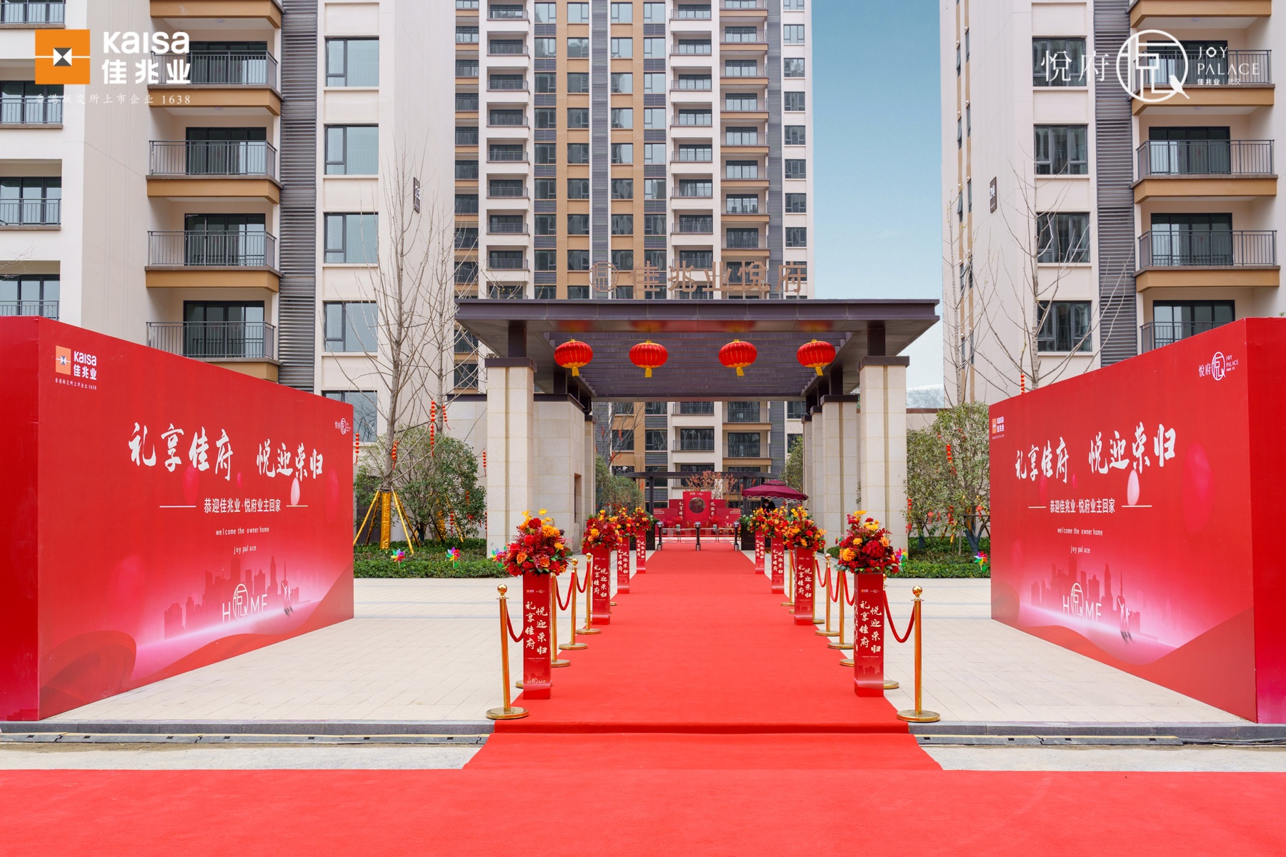 为了让"佳"人们感受归家的氛围, 佳兆业全体员工提早两周开始进行氛围布置,搭建交房现场,园区大门、景观园林、入户大堂等各处均被幸福和喜庆的装饰品点缀。佳兆业人努力把每一个细节都做到最好,只为让每一位"佳"人感受到温馨、至高的归家礼遇。