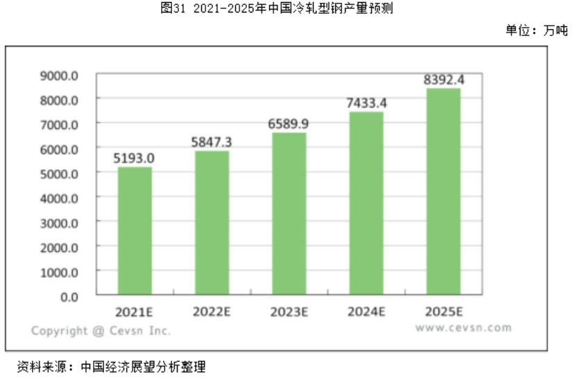 作为粗钢产能冠绝全球的国家,我国在冷轧钢市场的发展前景相较全球市场更为明朗。随着国家基础设施投资的扩大,下游建筑、汽车、桥梁、铁路、输电等行业对冷轧钢板的市场需求铁塔、机械制造等应用领域将逐步扩大。因此,未来我国冷轧成形钢还有很大的发展空间,市场还远未饱和。因此,未来几年,我国冷轧钢板市场和需求仍将保持增长态势。