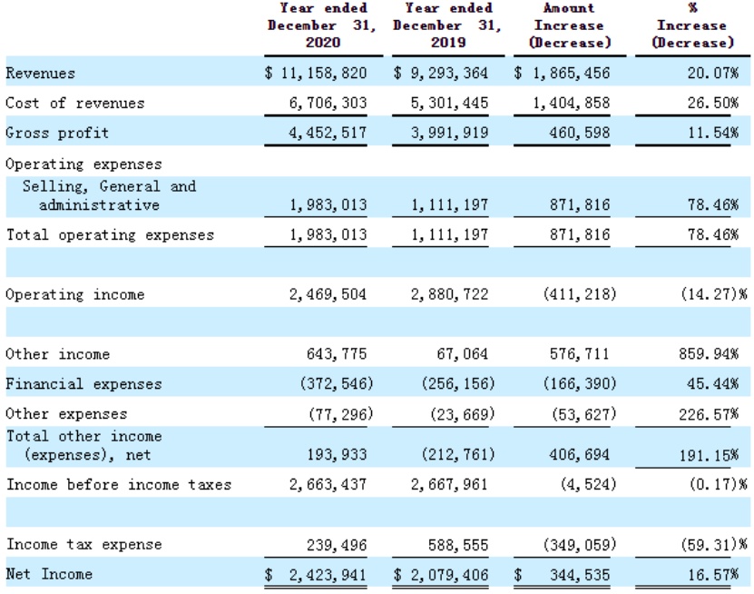 根据招股书显示,宏力型钢2019年年度总收入约930万美元,净收入约为210万美元;2020年年度总收入约1120万美元,同比增长20.07%,当期净收入约为240万美元。