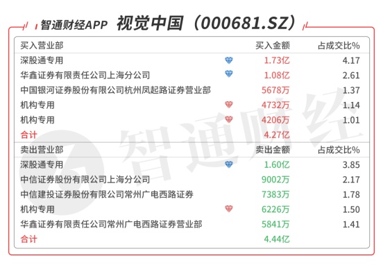 视觉中国(000681.SZ):多主力现身龙虎榜,深股通对倒,买一是知名游资的席位买入5997万元,当日对倒,该股今日强势涨停,预计走趋势为主。