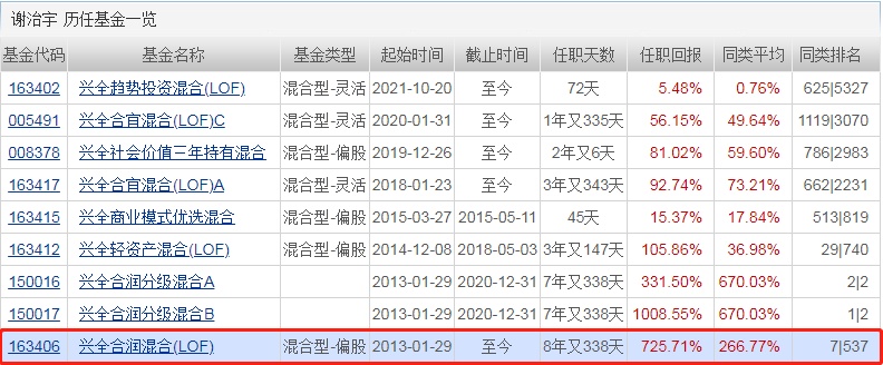 兴全合润混合(LOF)总规模287.56亿元,是谢治宇管理时间最长的基金,自接手以来收益率一直超过同类平均。他的现任基金资产总规模达938.07亿元,在管包括兴全趋势投资混合(LOF)、兴全合润混合(LOF)等在内的五只基金。