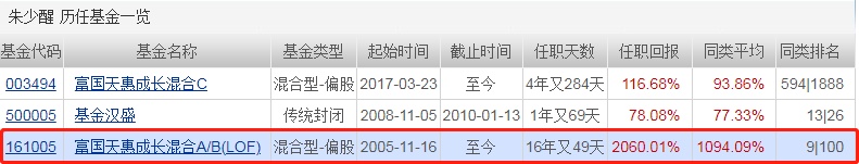 富国天惠成长混合A/B(LOF)总规模367.85亿元,是朱少醒在管三只基金中规模最大、管理时间最长的基金,他的现任基金资产总规模为398.99亿元。
