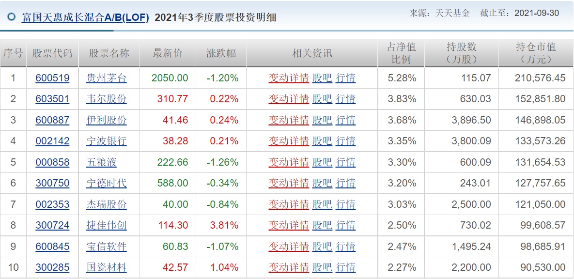 19年、20年及21年一、二、三季度,傅友兴亦均重仓制造业,分别占基金资产净值比例的28.76%、30.55%及29.6%、29.74%、32.92%。