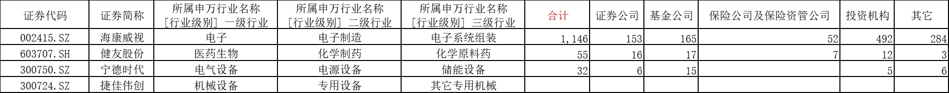 上表企业均为盘点的三位基金经理前十重仓股之一,海康威视所属计算机、通信和其他电子设备制造业,2021年共计1146家机构投资者对其调研;建友股份所属化学药品制剂制造业,55家机构投资者对其产生兴趣;宁德时代所属动力电池制造业,被32家机构投资者调研;捷佳伟创所属新能源装备研发制造业,未获机构调研。