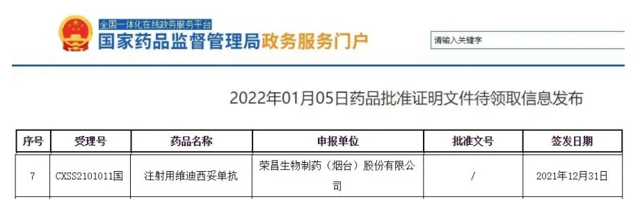 智通财经APP获悉,1月5日,中国国家药监局(NMPA)官网最新公示,荣昌生物-B(09995)的注射用维迪西妥单抗的新适应症上市申请获得批准。根据优先审评公示信息,该药本次获批治疗特定的尿路上皮癌患者。维迪西妥单抗是一款靶向HER2的抗体偶联药物(ADC),此前已在中国获批治疗特定的胃癌患者。