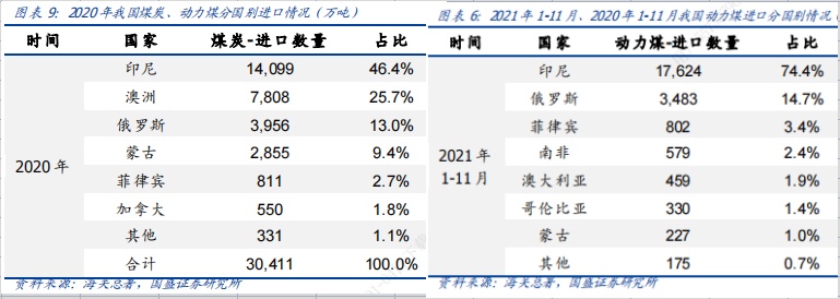 智通财经APP了解到,印尼是世界第一大煤炭出口国,同时也是我国煤炭/动力煤第一大进口来源国。数据显示,2020年我国累计进口煤炭3亿吨,其中自印尼进口14099万吨,占比46.4%。2021年1-11月,我国进口印尼动力煤1.77亿吨,同比增长54.4%,占进口动力煤总量的74.4%。