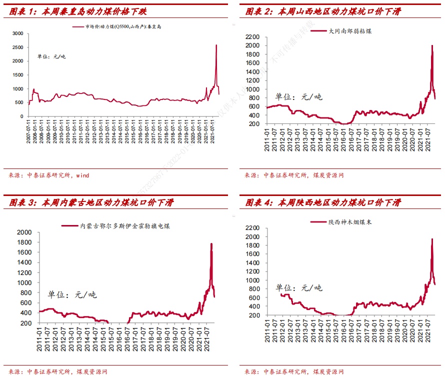 第二个阶段:10月中旬至11月中旬,板块遭遇强势调整。彼时,政策组合拳强力增产保供,市场恐慌情绪下煤价大幅下跌,二级市场上相关标的亦泥沙俱下。