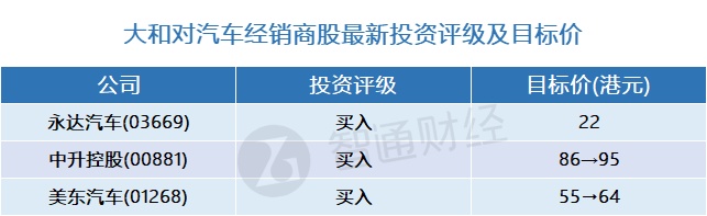 智通财经APP获悉,大和发布研究报告,认为市场夸大了豪华车经销商面对的四个问题,而该行覆盖的经销商,在二手车及豪华车市场增长的支持下,业务潜力大,值得获重估。维持对行业持“正面”看法,首选永达汽车(03669),因其估值不高,另上调中升控股(00881)及美东汽车(01268)目标价。
