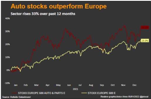 投资者对于汽车股的热情在过去几个月中被彻底点燃。欧洲汽车和汽车零部件指数单在本周就上涨了8%以上,超过了去年11月创下的历史最高纪录。代表汽车板块的行业指数在一年内上涨了33%,超过了同时期的欧洲大盘指数的上涨幅度(23%)。