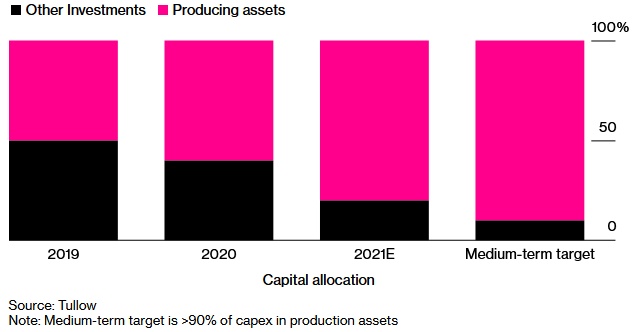 当Rahul Dhir加入图洛石油时,该公司仅有一半的资本支出用于运营资产,其余大部分资本支出都用于无法保证回报的勘探。该公司去年的一份报告显示,计划在2021年将80%的资本支出用于最大化现有资产的回报,中期回报率将升至90%以上。此外,该公司将在勘探选择上更加谨慎,并结束其在偏远地区的勘探。