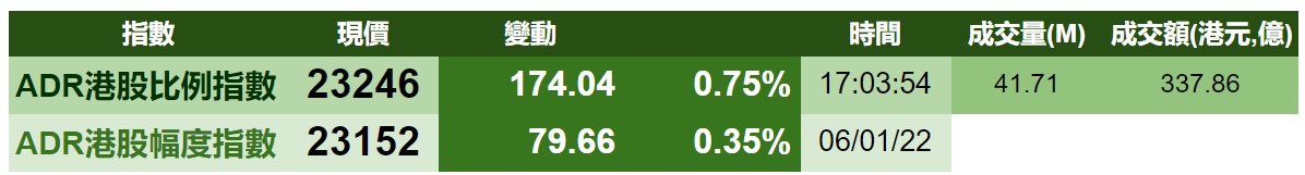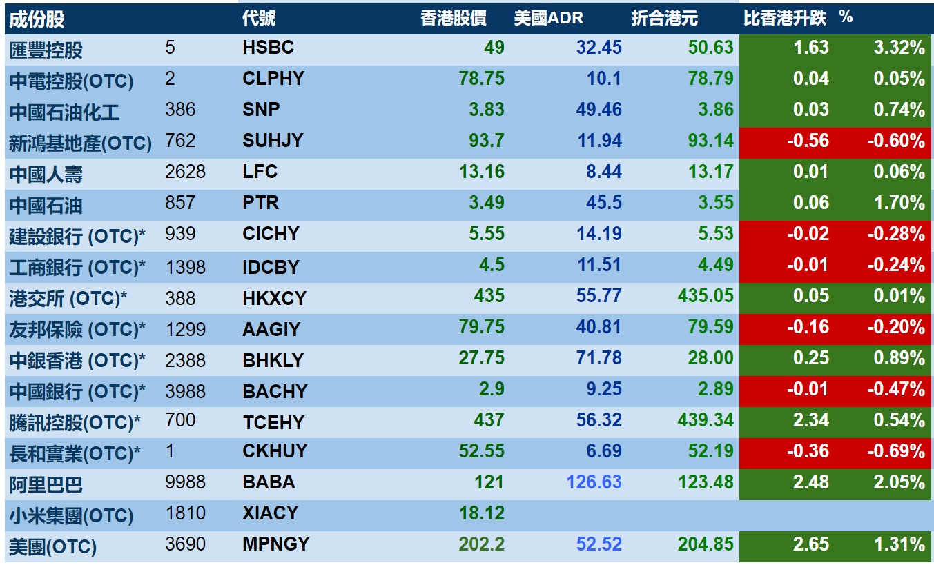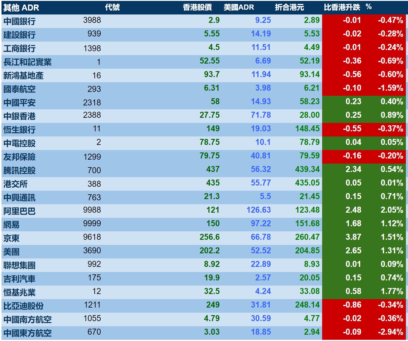 智通财经APP获悉,周四美股三大指数集体收跌,港股ADR指数上涨,按比例计算,收报23246点,升174.04点或0.75%。