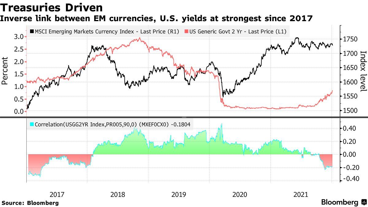 在美联储发出加息力度可能比预期更加激进的信号,削弱高风险性资产的吸引力后,新兴市场货币震荡可能会加剧。