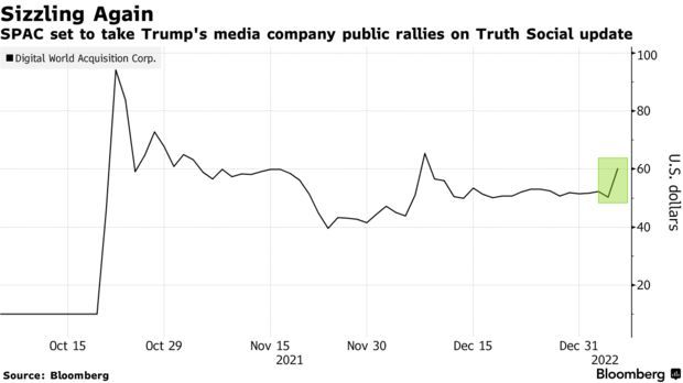 智通财经APP了解到,特朗普媒体技术集团(Trump Media & Technology Group)将于2月21日推出其应用Truth Social。有消息表示,特殊目的收购公司Digital World Acquisition Corp(DWAC.US)将与特朗普媒体科技集团合并,消息一经传出,该公司股票直接拉升,同时带动特朗普相关概念股。