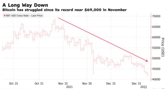 比特币去年上涨了约60%,表现优于其他资产类别,这得益于机构采用、通胀避险和投资多元化。但最近几周金融市场动荡,该加密货币举步维艰。不断飙升的通胀正导致各央行收紧货币政策,这将会削弱提振多种资产价格的流动性。