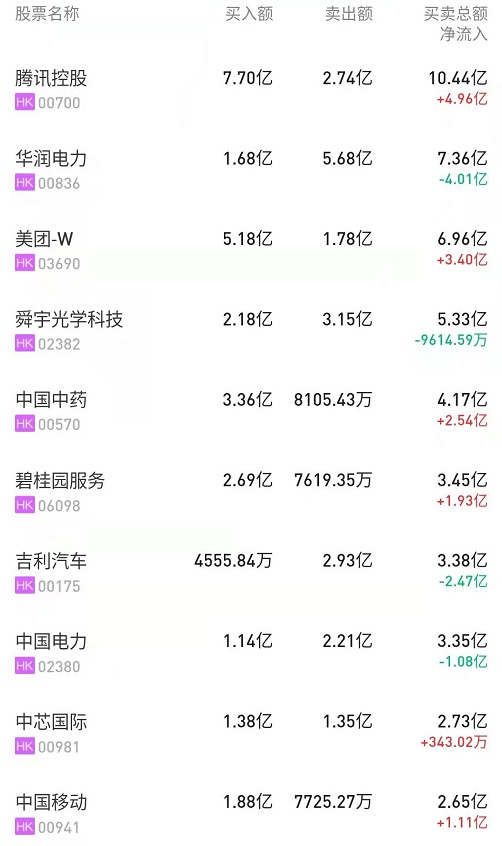 港股通(深)十大活跃成交股
