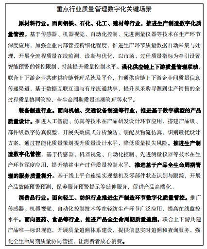《制造业质量管理数字化实施指南(试行)》: