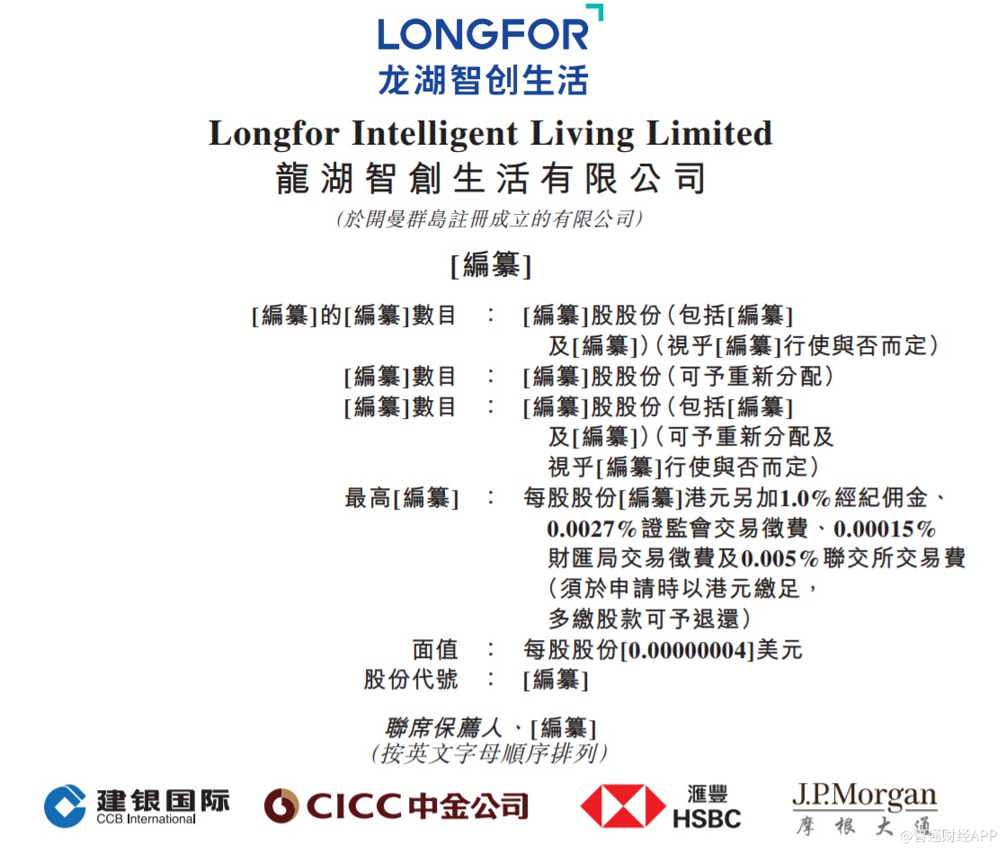 智通财经APP获悉,据港交所1月7日晚间披露,龙湖智创生活有限公司向港交所主板提交上市申请,建银国际、中金公司、汇丰以及摩根大通为联席保荐人。
