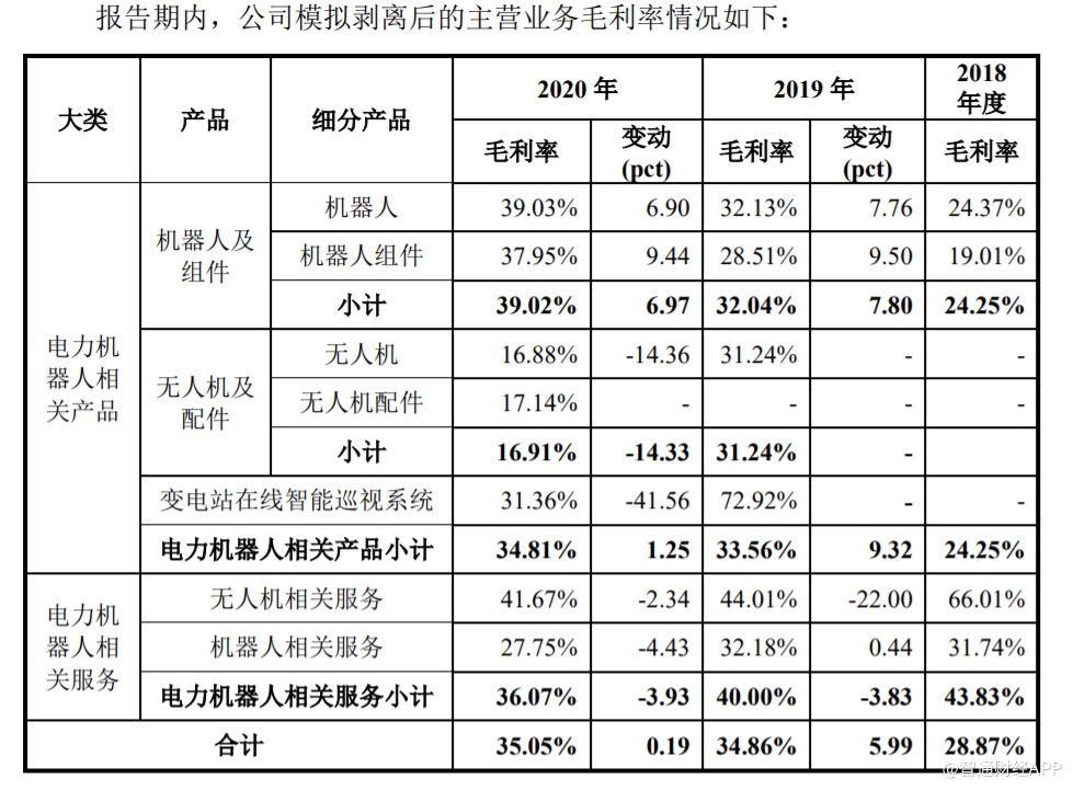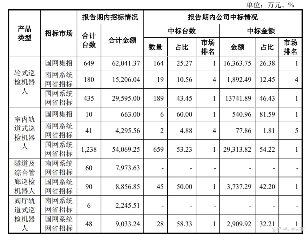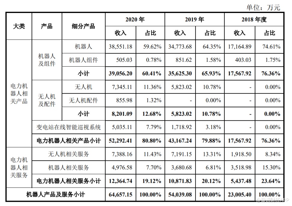 据招股书显示,在相关业务剥离后,国网智能仅从事电力机器人相关业务,具体为电力机器人、无人机、变电站在线智能巡视系统等产品的研发、生产、销售以及基于上述产品为电网提供的设备巡视、数据采集与分析、培训与维修等相关服务。