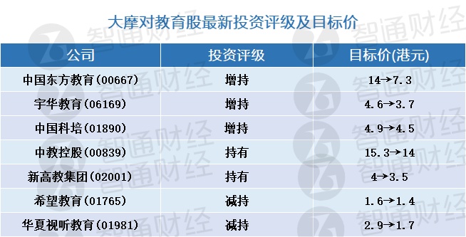 此外,大摩将希望教育(01765)及好未来(TAL.US)的评级由“与大市同步”降至“减持”,目标价分别降至1.4港元及3.5美元。