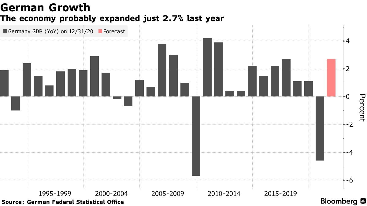 智通财经APP了解到,德国将于周五成为7国集团之中第一个公布2021年GDP数据的国家,此前有经济学家预计德国去年最后三个月可能出现经济萎缩。