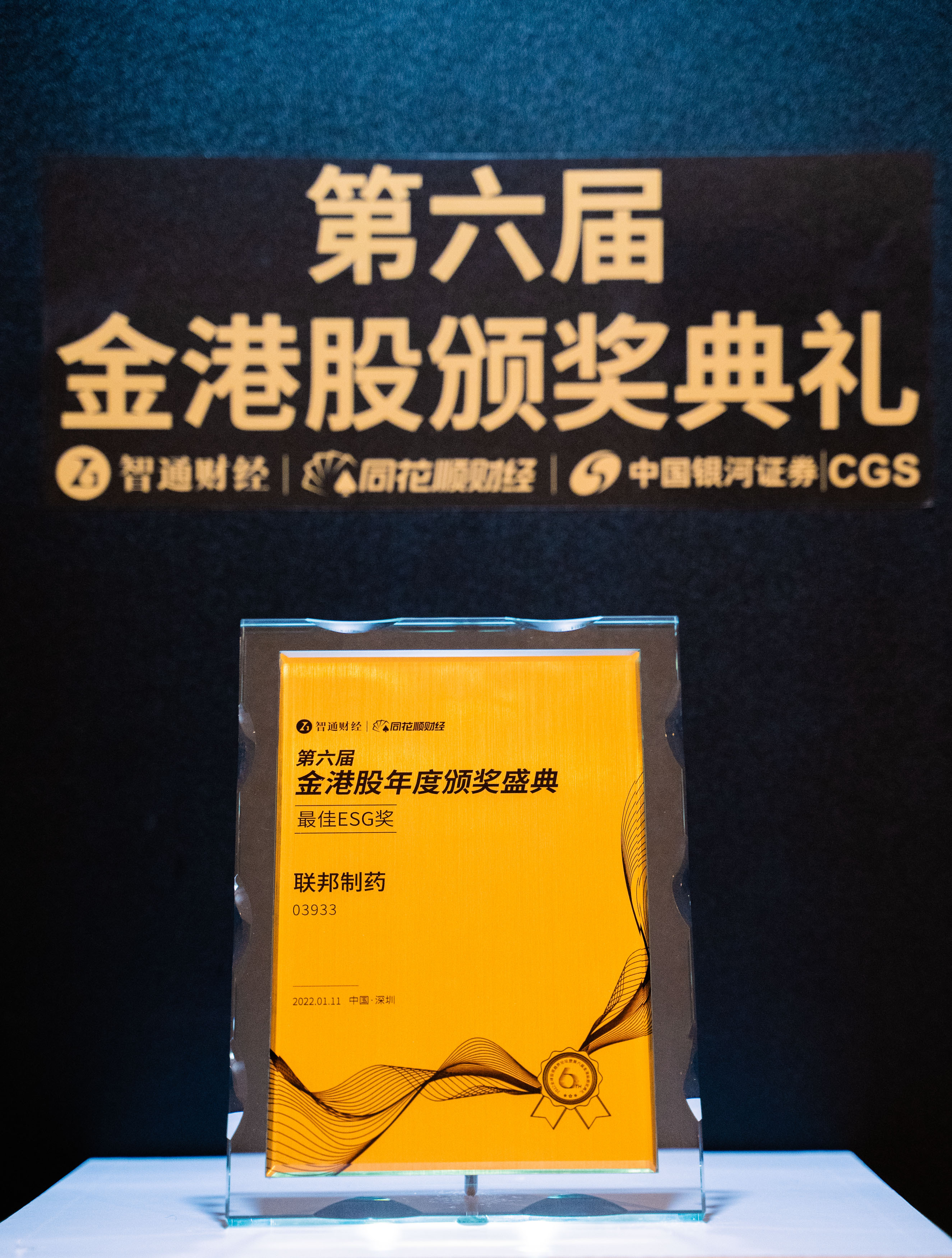 2022年1月11日,在深圳举办的“2022年全球投资趋势论坛暨第六届金港股颁奖典礼”上,联邦制药(03933)荣获“最佳ESG奖”奖项。