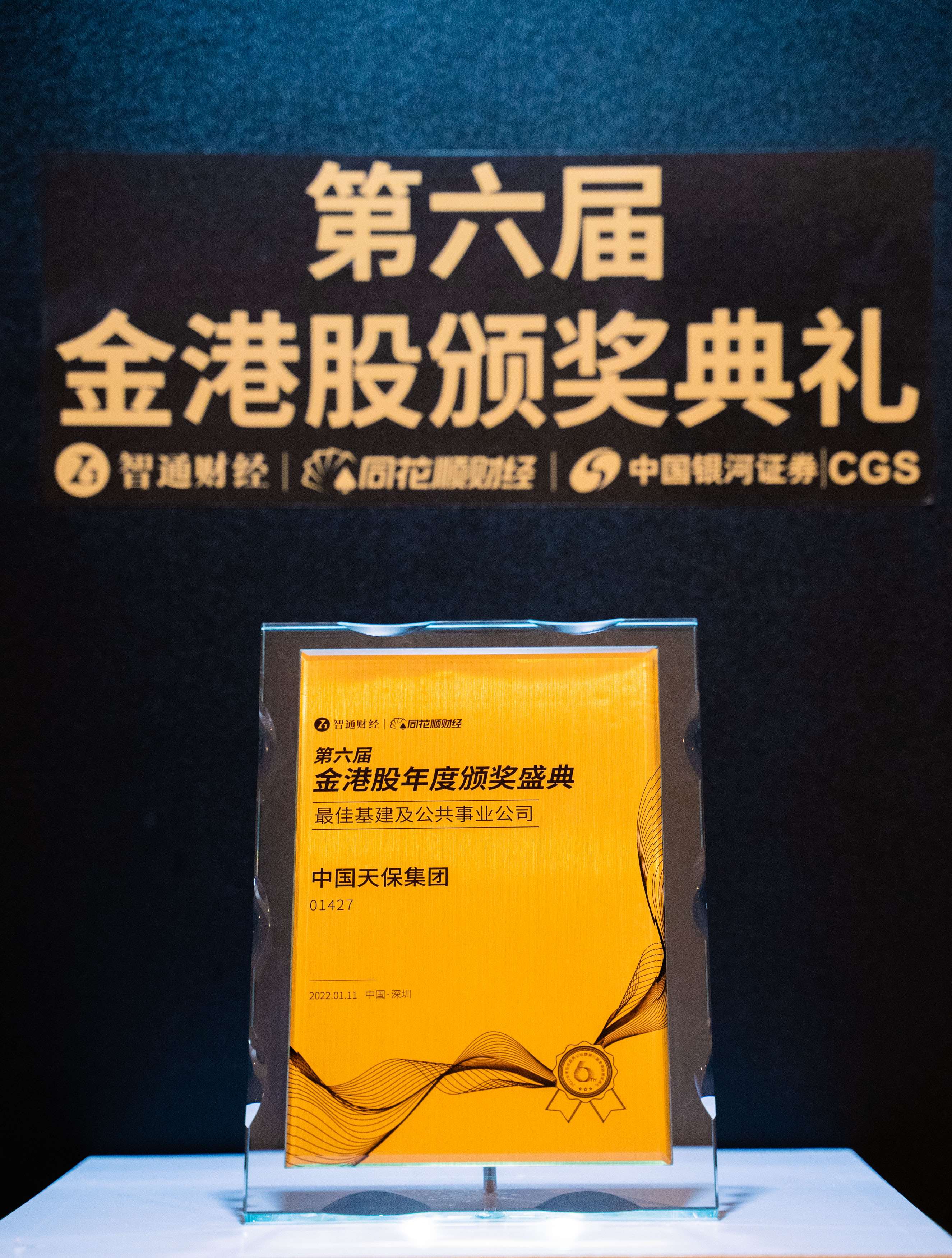 2022年1月11日,在深圳举办的“2022年全球投资趋势论坛暨第六届金港股颁奖典礼”上,中国天保集团(01427)荣获“最佳基建及公共事业公司”奖项。