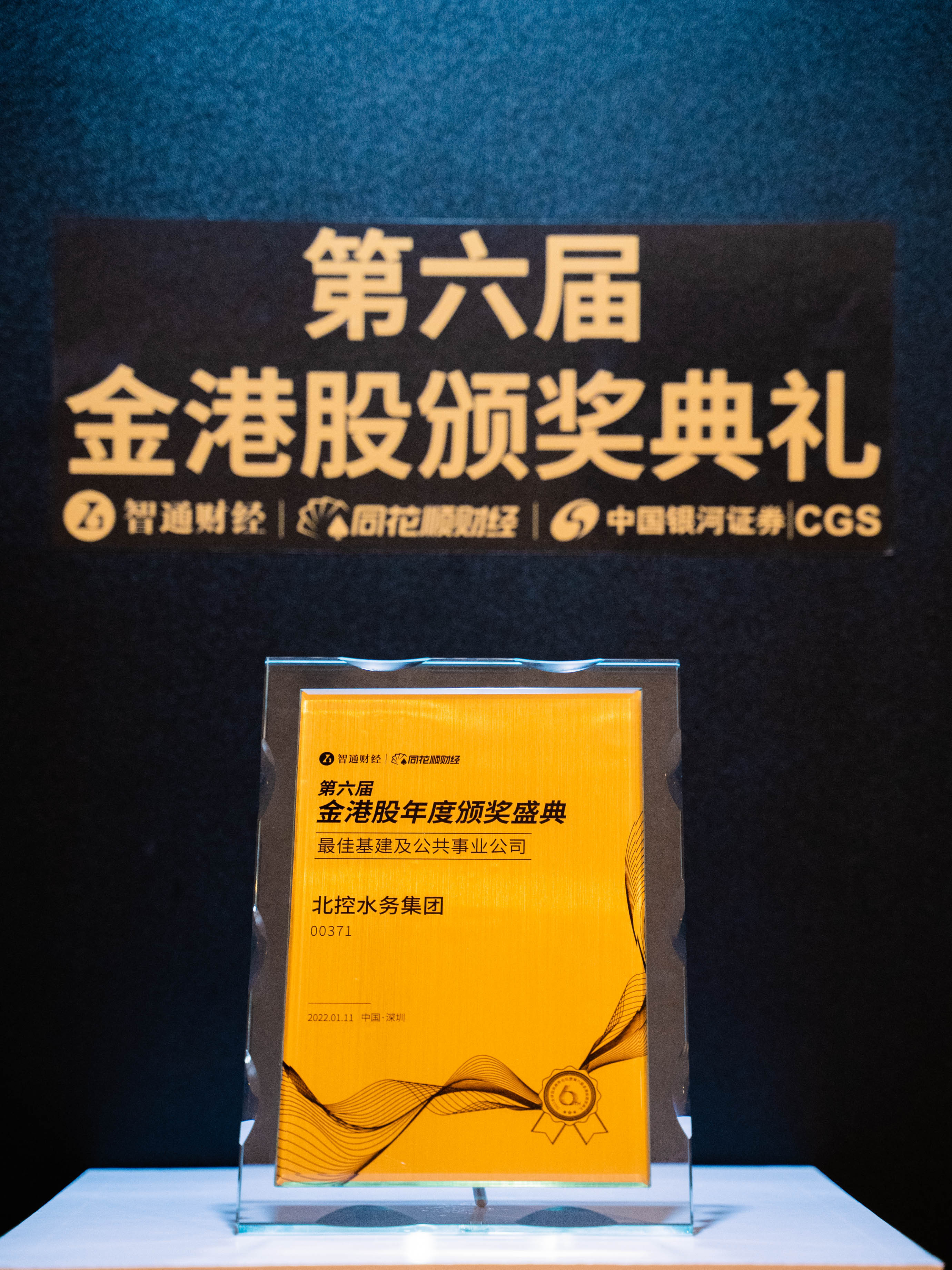 2022年1月11日,在深圳举办的“2022年全球投资趋势论坛暨第六届金港股颁奖典礼”上,北控水务集团(00371)荣获“最佳基建及公共事业公司”奖项。