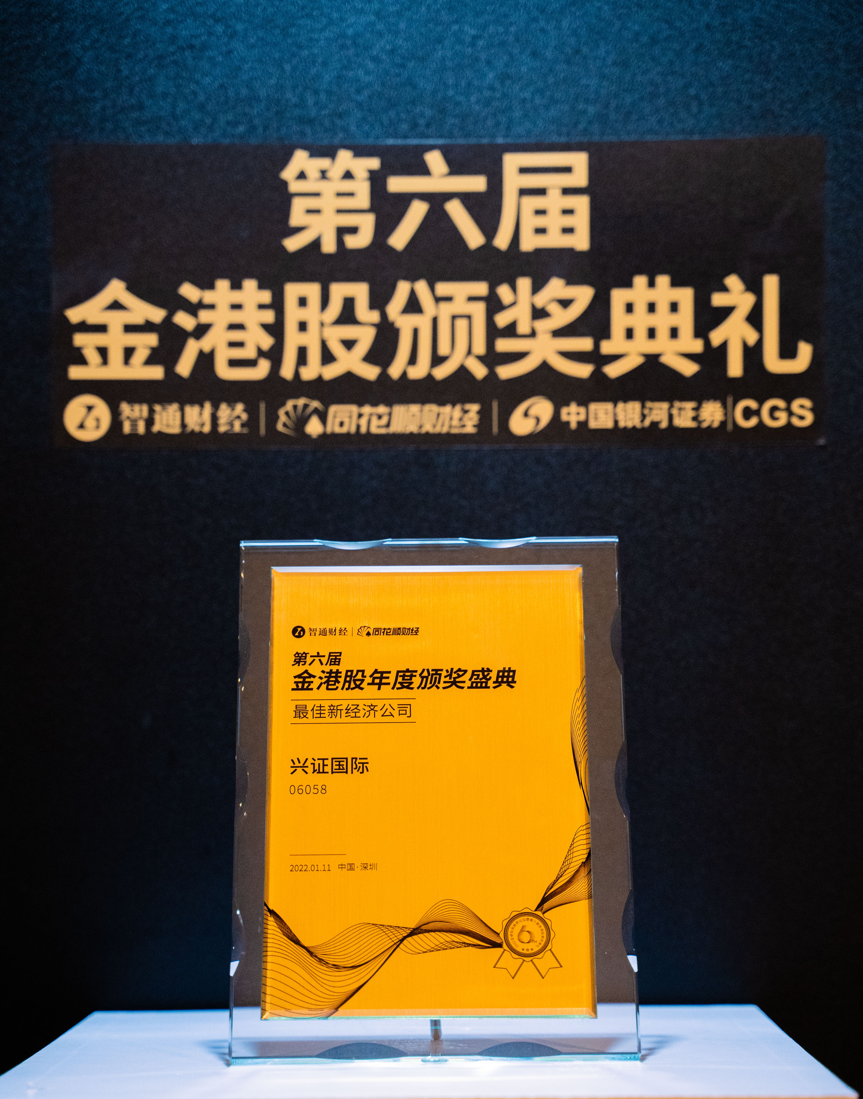 2022年1月11日,在深圳举办的“2022年全球投资趋势论坛暨第六届金港股颁奖典礼”上,兴证国际(06058)荣获“最佳新经济公司”奖项。