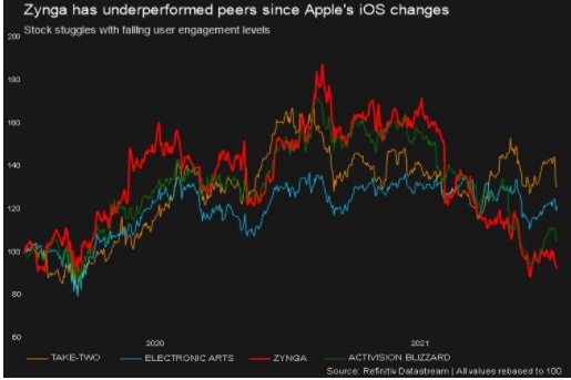 最近一次谈判发生在去年年底,当时Zynga市值缩水超过三分之一,位列主要游戏发行商最大跌幅。Zynga已经受到了用户粘性下降和苹果允许iPhone用户选择不被广告商跟踪的负面影响。