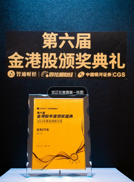 2022年1月11日,在深圳举办的“2022年全球投资趋势论坛暨第六届金港股颁奖典礼”上,吉利汽车(00175)荣获“2021年度金港股大奖”、“最具价值汽车公司”奖项。