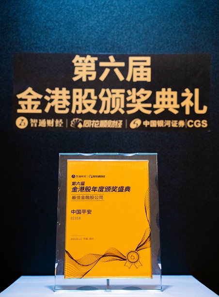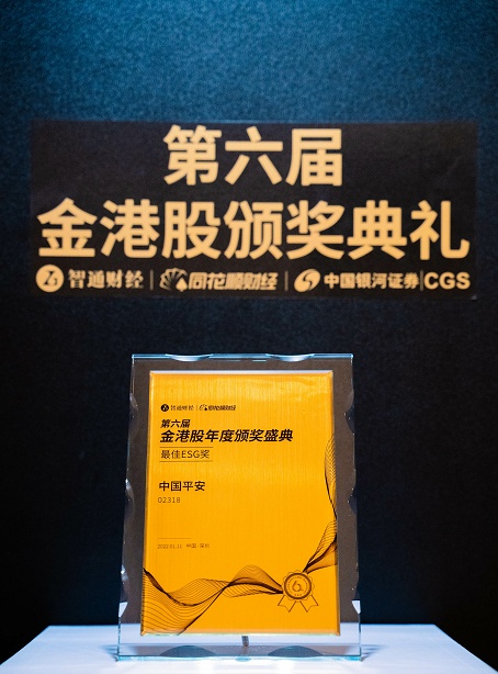 2022年1月11日,在深圳举办的“2022年全球投资趋势论坛暨第六届金港股颁奖典礼”上,中国平安(02318)荣获“最佳金融股公司”、“最佳ESG奖”奖项。