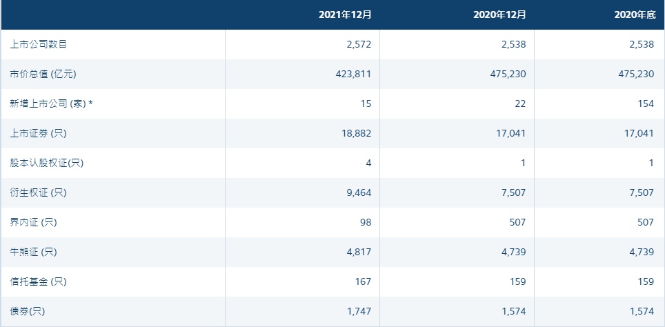 证券市场方面,2021年的衍生权证平均每日成交金额为112亿元,较2020年的91亿元上升23%。