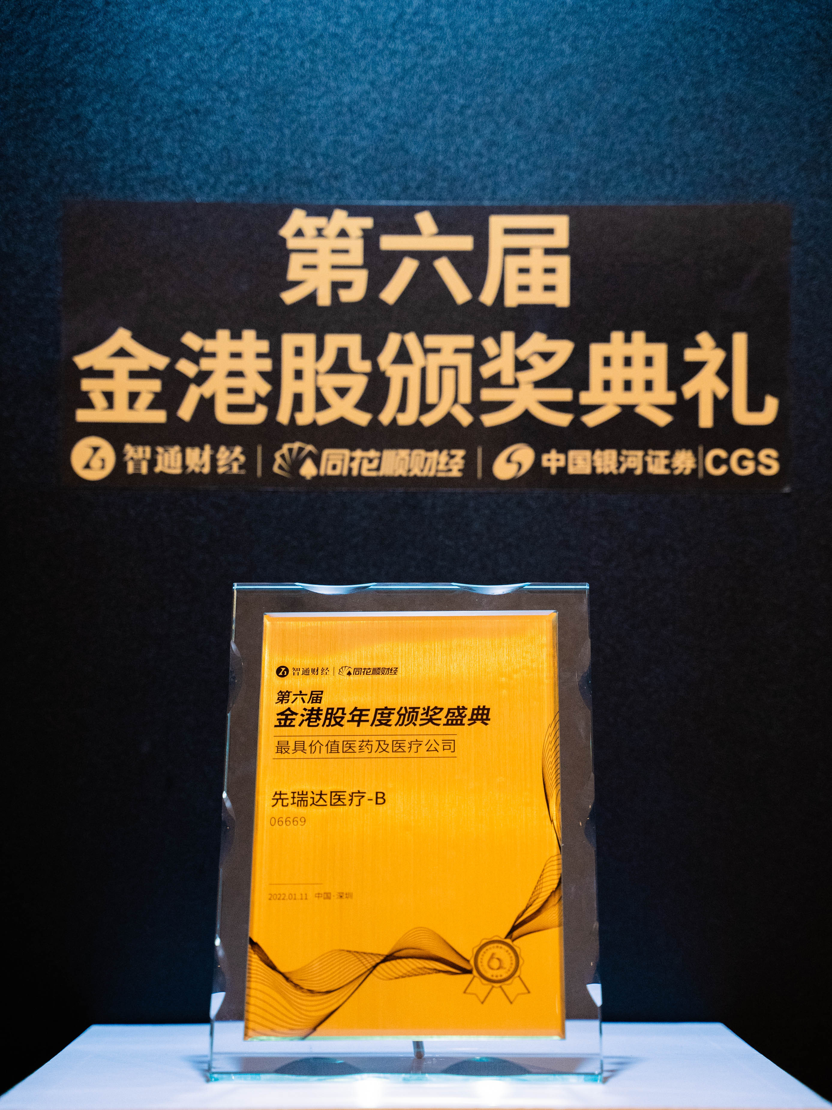 2022年1月11日,在深圳举办的“2022年全球投资趋势论坛暨第六届金港股颁奖典礼”上,先瑞达医疗-B(06669)荣获“最具价值医药及医疗公司”奖项。