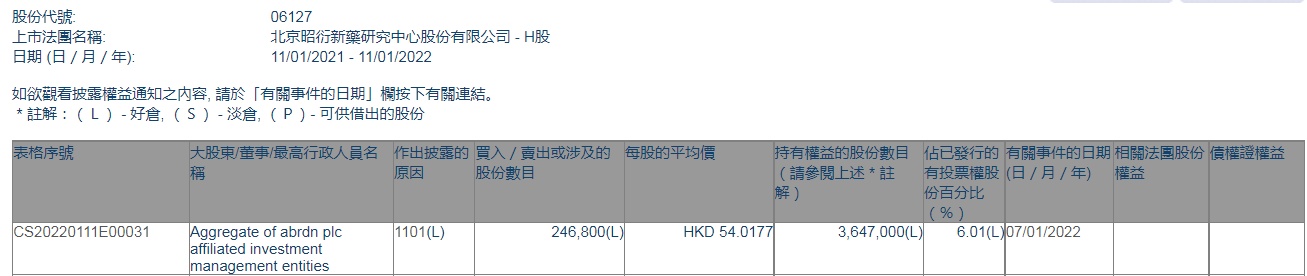 智通财经APP获悉,香港联交所最新资料显示,1月7日,Aggregate of abrdn plc affiliated investment management entities增持昭衍新药(06127)24.68万股,每股作价54.0177港元,总金额约为1333.16万港元。增持后最新持股数目为364.7万股,最新持股比例为6.01%。