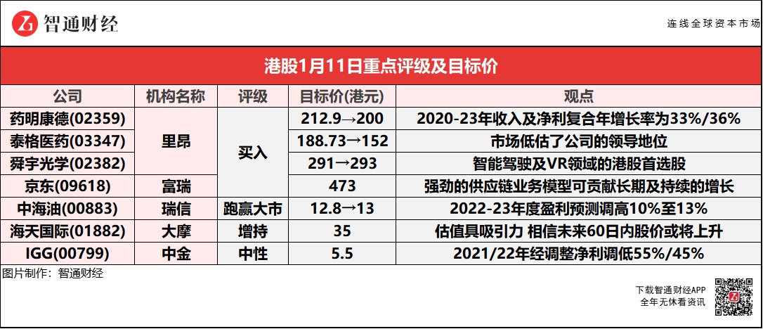 里昂将泰格医药(03347)目标价由188.73港元下调19.5%至152港元,上调2021-23年收入预测7%至19%。泰格医药过去半年股价调整,反映市场对中国医药创新展望的谨慎态度,但认为市场低估其的领导地位,预期公司将强化其于受托研究机构部门的主导地位。