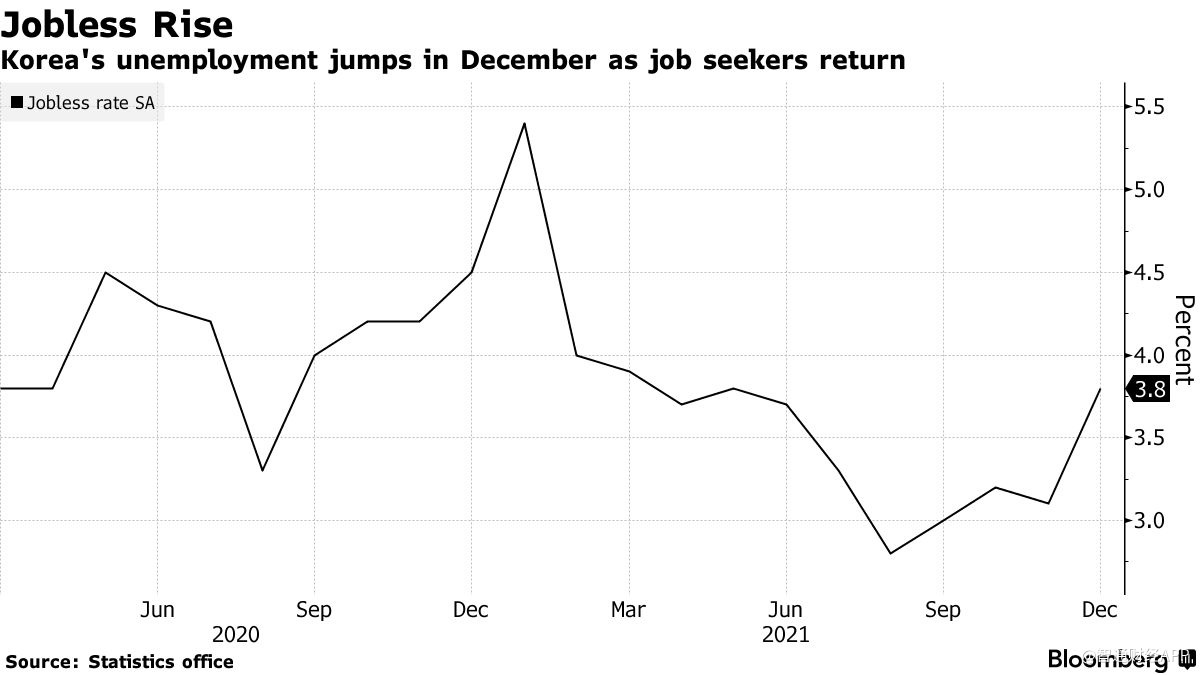 最近几周, 随着omicron 的迅速传播,经济不确定性上升。但12月的数据显示,尽管韩国政府增加了新的限制措施,劳动力市场仍显示出复苏迹象。