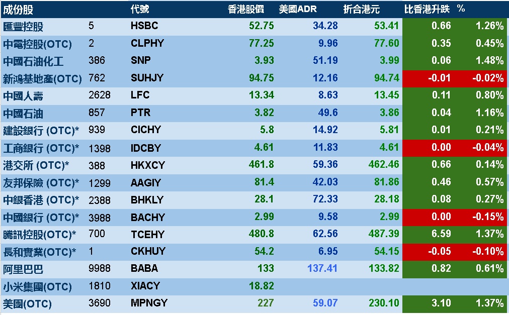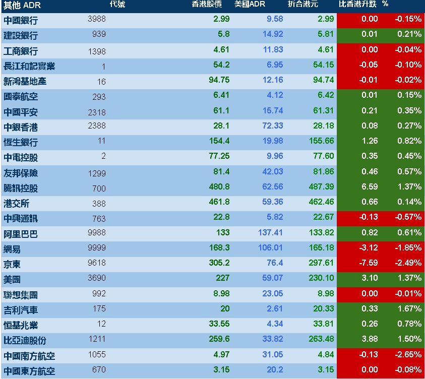 智通财经APP获悉,周三美股三大指数齐涨,港股ADR指数上涨,按比例计算,收报24569点,涨167.27点或0.68%。