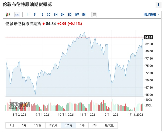 截至发稿,3月份交割的布伦特原油价格至每桶84.84美元