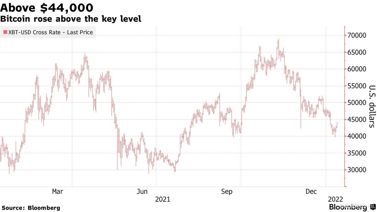 智通财经APP获悉,当地时间周三,美国劳工部公布,美国12月未季调CPI同比增长7%,预期增长7%,前值为6.8%,继续创1982年6月以来新高。数据发布后,比特币上涨3.3%,至44085美元。部分投资者预测通胀涨幅将更高,从而推动股票等风险资产走高。
