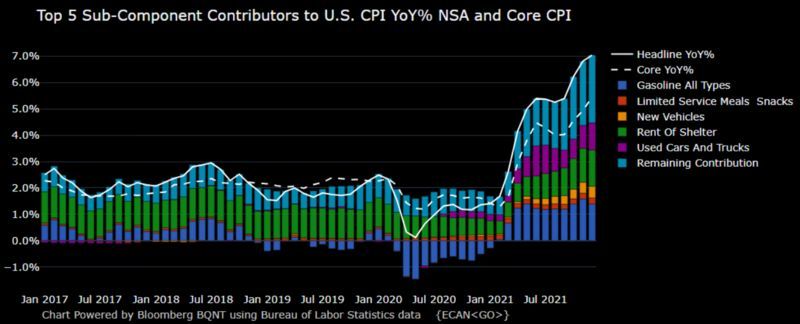 智通财经APP获悉,美国通胀率在2021年结束时处于炙热的水平,其主要驱动因素则反映了美国在几波疫情的冲击下经济复苏面临的困境。