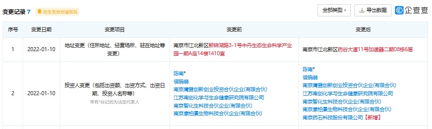智通财经APP获悉,企查查APP显示,南京科络思生物科技有限公司于1月10日发生工商变更,新增南京药石科技股份有限公司为股东。