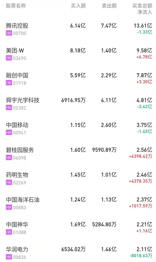 中国移动(00941)再获净买入3.09亿港元。消息面上,中国移动此前宣布,计划回购最多占已发行H股总数的10%。此外,天风证券表示,中国移动网络规模和用户规模领先优势明显。 C端业务受益提速降费转向精准降费,叠加5G渗透率快速提升、智慧家庭等增值服务持续发展,ARPU值企稳回升趋势确立,C端业务基本面全面向好。