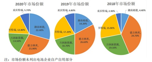 根据中国化学与物理电源行业协会的数据显示,2018年湖北万润以19.1%的市场份额位于行业第二位;2019年、2020年,公司在国内磷酸铁锂正极材料的市场占有率分别16.7%及13.5%,退居行业第三位。公司的主要客户有宁德时代(300750.SZ)、比亚迪(002594.SZ)、中航锂电、亿纬锂能(300014.SZ)等知名电池厂商。