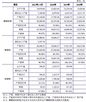 智通财经APP还注意到,随着新能源汽车的热销,以及国家出台《新能源汽车产业发展规划(2021—2035 年)》《绿色出行行动计划(2019-2022 年)》等一系列政策的推动,新能源汽车的产销量呈现爆发式增长态势,作为新能源汽车动力电池的核心材料磷酸铁锂供不求,2021 年 1-9 月,公司主要产品磷酸铁锂的产能利用率已达到 92.66%,产销率达到 94.87%,均处于较高水平。