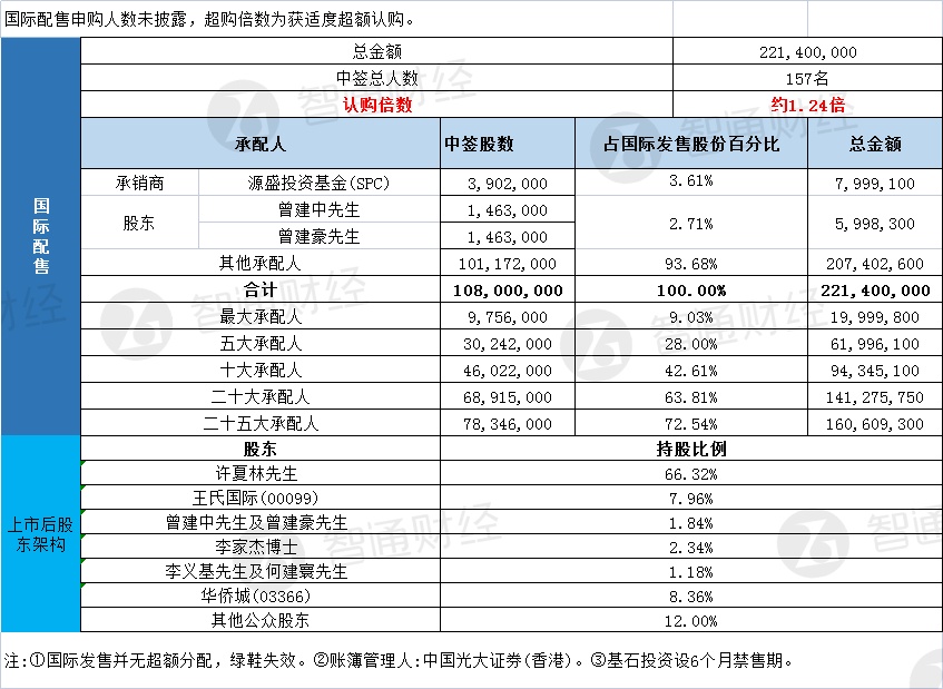 国际配售申购人数未披露,认购倍数约1.24倍。