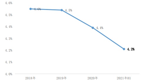 2021年龙湖集团财务盘面稳健,融资环境进一步向好。净负债率为46.0%、现金短债比为5.48倍(剔除预售监管资金及受限资金后现金短债比为3.91),剔除预收款后的资产负债率为68.3%。秉持长期的高度自律,龙湖集团连续5年保持“三道红线”的绿档水平。此外,公司的融资成本由2020年底4.4%进一步下降至4.2%,获境内外全投资级评级,反应了资本市场对龙湖集团的充分认可。